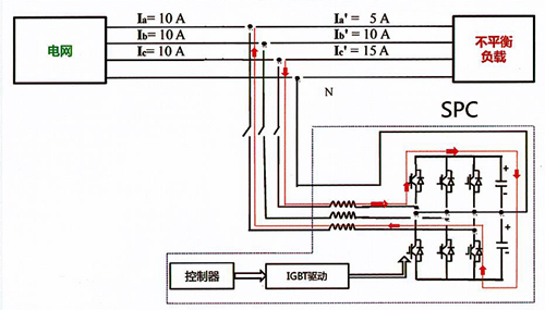 DESPC三相負(fù)荷不平衡自動調(diào)節(jié)裝置綜合利用IGBT技術(shù)、SVG技術(shù)、電力電子技術(shù)等多種技術(shù)融合,裝置利用采樣電路實時采集低壓配電線路的三相電壓、三相電流等運(yùn)行參數(shù),通過模型運(yùn)算計算出三相間的不平衡負(fù)荷和需要補(bǔ)償?shù)碾娏鳎缓蟾鶕?jù)裝置設(shè)定的值來控制PWM信號發(fā)生器發(fā)出控制信號給內(nèi)部的IGBT使逆變器產(chǎn)生滿足要求的電流信號。最終由逆變器產(chǎn)生一個滿足要求的電流信號送入到系統(tǒng)中,實現(xiàn)三相符合平衡調(diào)節(jié)。三相負(fù)荷不平衡自動調(diào)節(jié)裝置主要用于低壓配電用戶側(cè),治理三相電流不平衡,相電壓偏低和補(bǔ)償無功,優(yōu)化電能質(zhì)量。